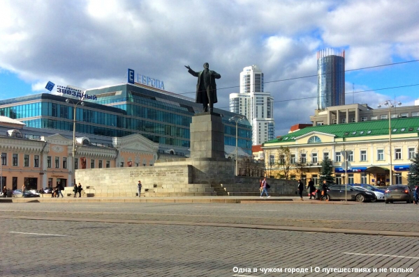 Над трибуной вначале был водружён большой портрет, а затем и скульптура Сталина. В 1953 году её демонтировали. Четырьмя годами позже, к 40-й годовщине Октябрьской революции, место отца народов занял памятник Ленину авторства Владимира Ингала, Анатолия Прибульского и Петра Деминцева. Отлили свердловского Ильича на ленинградском заводе "Монументскульптура". Сегодня он имеет статус памятника культуры регионального значения.